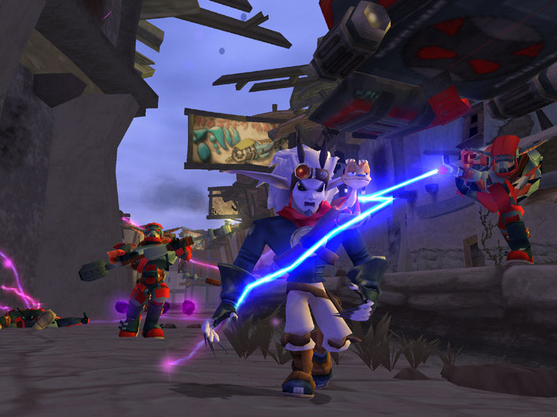 Unleash Jak's dark powers in the gritty, open-world adventure of Jak II for the Playstation 2. After being imprisoned and experimented on for two years, Jak and Daxter find themselves in the dystopian Haven City. Master new Dark Eco abilities, wield powerful weaponry, hijack vehicles, and fight against the tyrannical Baron Praxis and his Krimzon Guard. This action-packed sequel delivers a darker storyline, intense combat, and a sprawling city to explore.