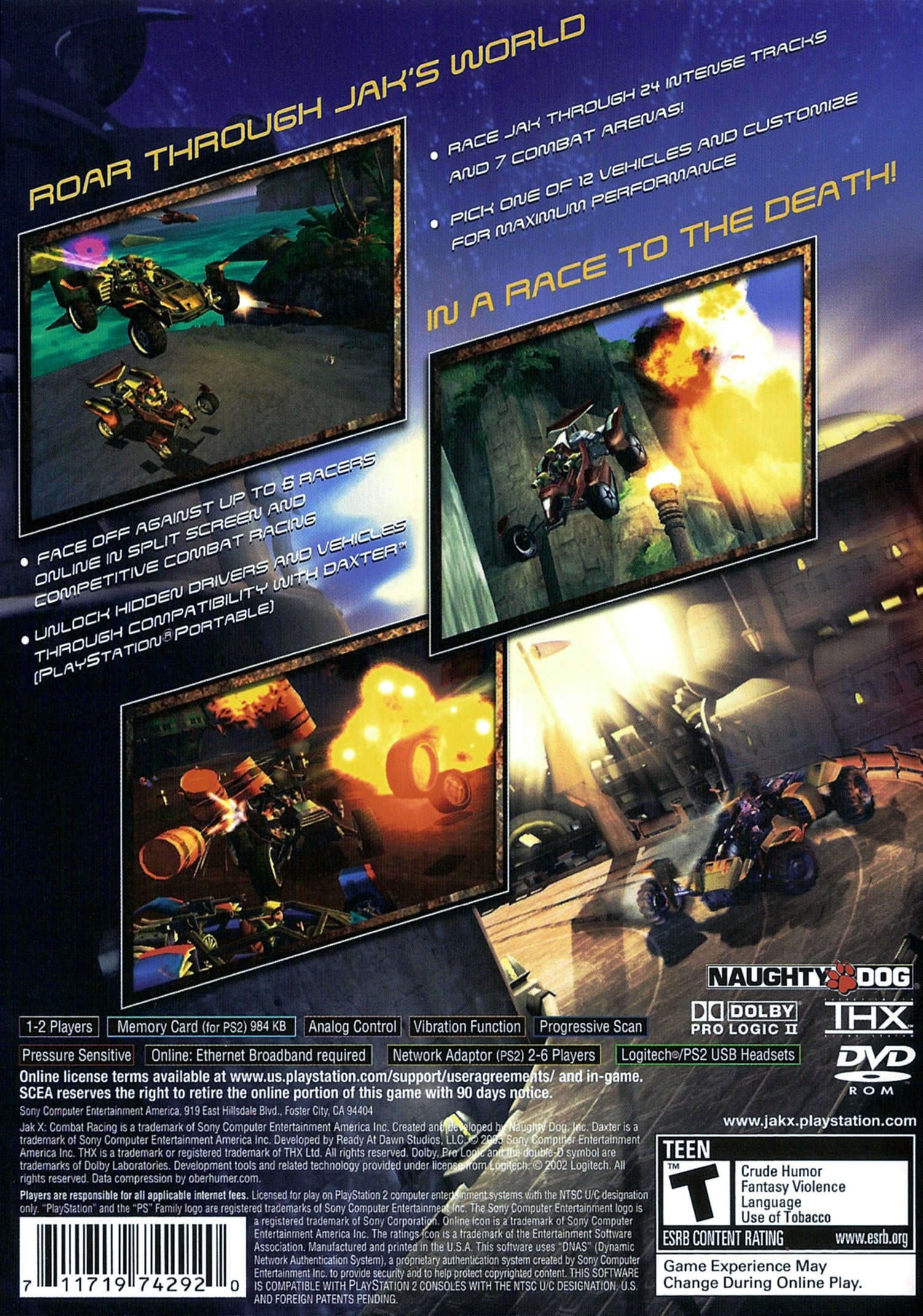 Get ready for high-octane vehicular mayhem in Jak X: Combat Racing for the Playstation 2. After being poisoned, Jak and Daxter are forced to compete in the brutal Kras City Grand Championship. Pilot a variety of customizable, weaponized vehicles across dangerous tracks, battling aggressive opponents in intense races and arena combat. Unleash devastating attacks, discover hidden shortcuts, and fight for the antidote in this thrilling combat racer.