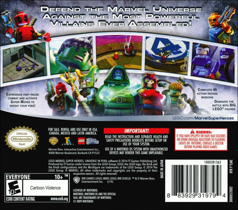 Take heroic action on the go with LEGO Marvel Super Heroes: Universe in Peril for the Nintendo DS. Join Iron Man, Spider-Man, Hulk, Captain America, and many more Marvel heroes as they battle to stop Loki and a host of other villains from assembling a super-weapon. Complete action-packed missions, unlock a huge roster of characters, and unleash powerful abilities in this handheld LEGO adventure that brings the Marvel Universe to the palm of your hand.