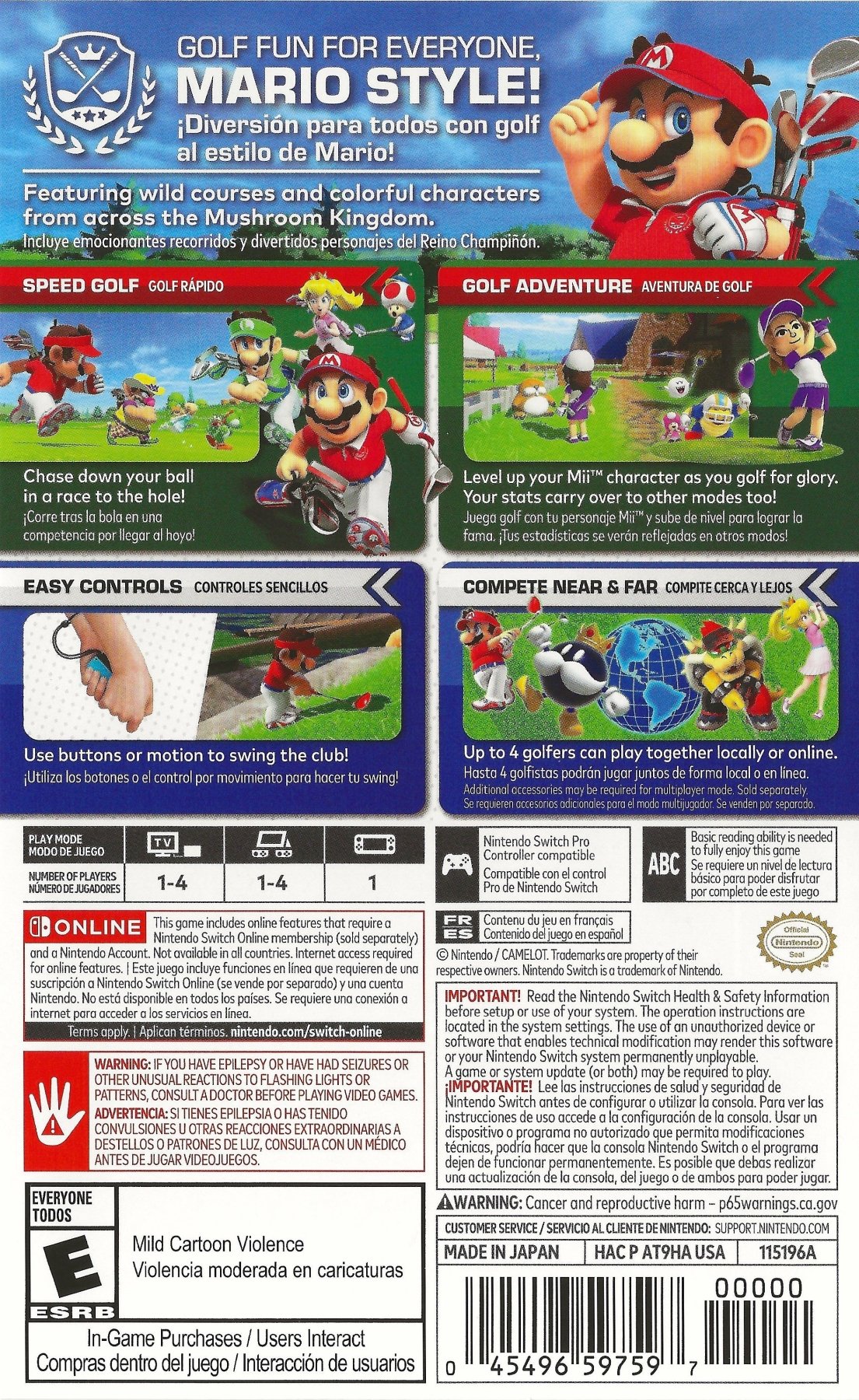Tee off with your favorite Mushroom Kingdom characters in Mario Golf: Super Rush for the Nintendo Switch. Master intuitive motion or button controls as you play on a variety of imaginative courses. Experience new modes like Speed Golf, where everyone tees off at once and races to their ball, and the RPG-like Golf Adventure, where your Mii can rise through the ranks. With local and online multiplayer, it’s a fresh and energetic take on Mario Golf.