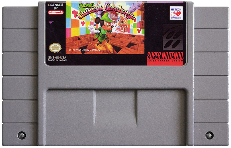 Test your wits with Mickey's Ultimate Challenge for the Super Nintendo. Join Mickey Mouse on a whimsical adventure through a dreamlike world, solving a variety of brain-teasing puzzles and mini-games. Help Mickey overcome challenges related to logic, memory, and pattern recognition to progress through this charming and mentally stimulating console title. It’s a fun way to exercise your mind with a Disney twist.