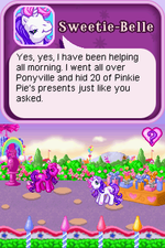 Get ready to plan the best party ever with My Little Pony: Pinkie Pie's Party for the Nintendo DS. Join your favorite ponies in Ponyville as you help Pinkie Pie prepare for a huge celebration. This charming title is filled with a variety of fun and accessible mini-games that young players will love. Use the DS stylus to help bake cakes, create invitations, and decorate for the big event. With its colorful graphics, beloved characters, and focus on creativity and fun, it's a delightful adventure for any fan of My Little Pony.