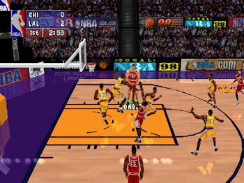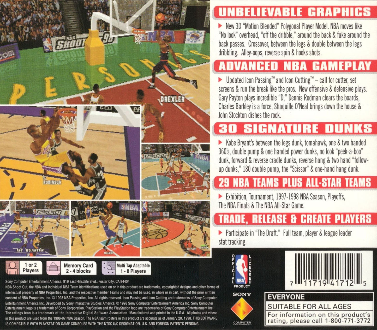 Take it to the hoop with NBA ShootOut 98 for the PlayStation. This basketball simulation features official NBA teams and players from the 1997-98 season, delivering fast-paced 5-on-5 action. Experience refined gameplay mechanics, detailed player animations, and various game modes as you compete for championship glory in this engaging retro sports title.