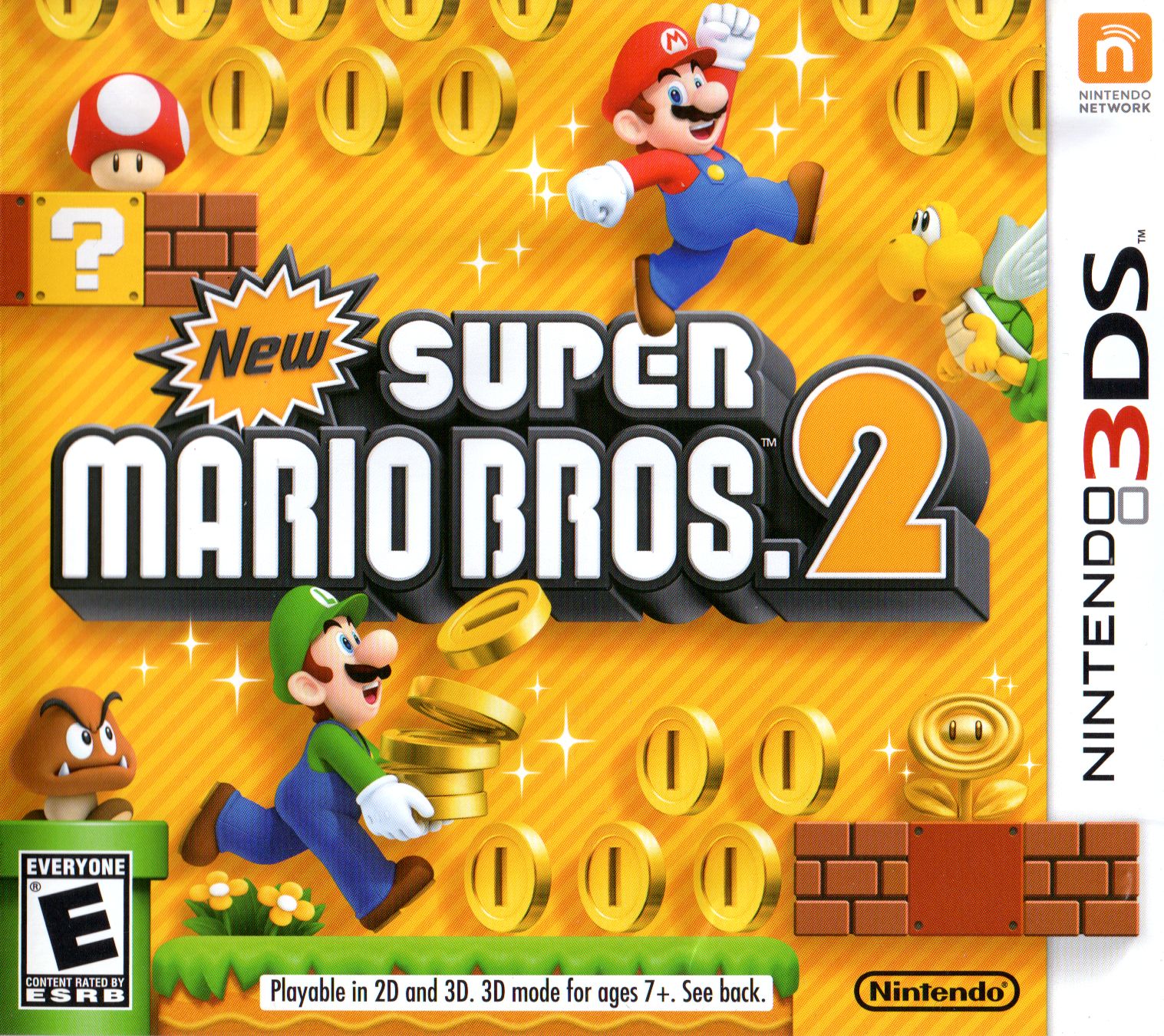 Collect a mountain of gold in New Super Mario Bros. 2 for the Nintendo 3DS. This classic side-scrolling adventure sends Mario and Luigi on a quest to rescue Princess Peach, with a special emphasis on coin collecting. Grab Gold Flowers to turn enemies and blocks into coins, chase down Gold Ring bonuses, and aim for a million-coin jackpot! Enjoy thrilling platforming action and competitive co-op play in this treasure-filled Mario experience.
