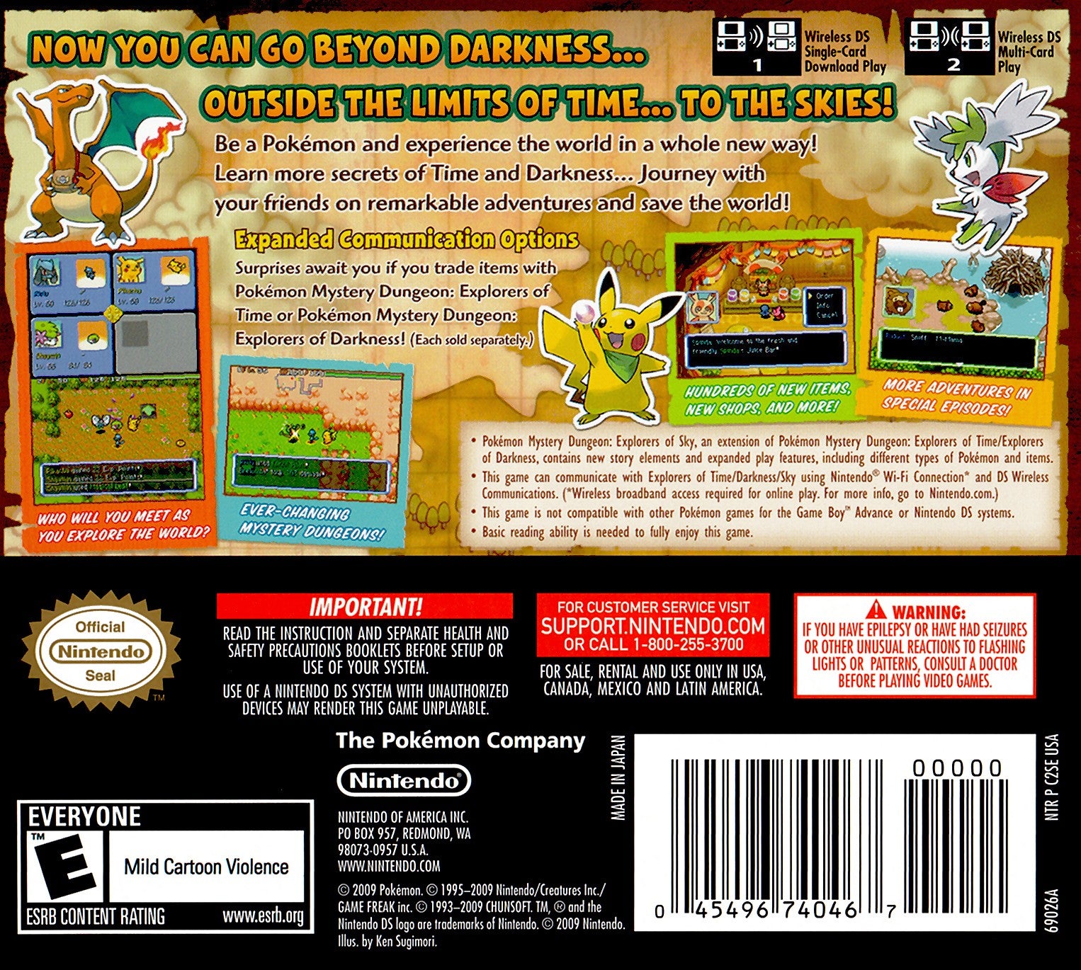 Embark on an epic and emotional journey in Pokémon Mystery Dungeon: Explorers of Sky for the Nintendo DS. This enhanced version of Explorers of Time and Darkness allows you to experience the world as a Pokémon, teaming up with a partner to join an exploration guild. Delve into randomly generated dungeons, battle hostile Pokémon in turn-based combat, and uncover the truth behind a world where time itself is in peril. Featuring new playable characters, special episodes that expand the story, and more content, it's the definitive edition of this beloved dungeon-crawling RPG.