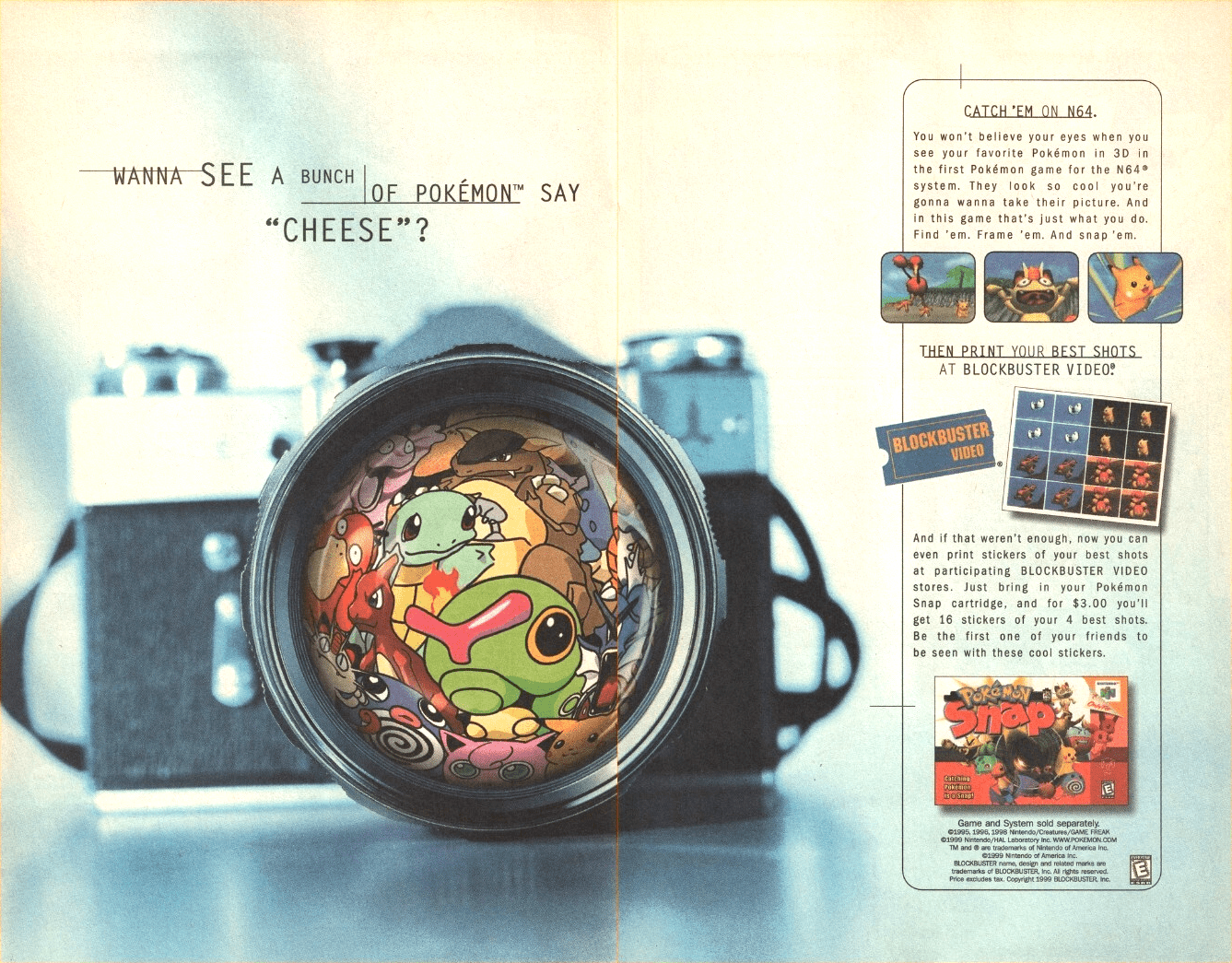 Grab your camera and embark on a photographic safari in Pokémon Snap for the Nintendo 64. As Todd Snap, you're tasked by Professor Oak with traveling to Pokémon Island and capturing stunning photographs of various Pokémon in their natural habitats. Ride the Zero-One vehicle through diverse courses, using items like apples and Pester Balls to lure Pokémon out or elicit unique behaviors for better shots. With its charming presentation, innovative gameplay, and focus on discovery and creativity, Pokémon Snap offers a beloved and distinct experience for Pokémon fans.