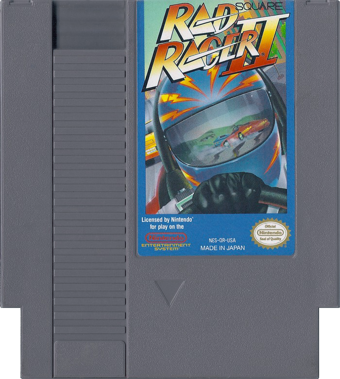 Hit the road for more high-speed thrills in Rad Racer II for the NES. This sequel to the popular 8-bit racing game continues the tradition of fast-paced, checkpoint-based racing across various scenic routes. Choose your car and navigate challenging courses filled with rival racers and tight turns, aiming to reach the finish line before time runs out. While similar in gameplay to its predecessor, Rad Racer II offers new tracks and continues to deliver the exhilarating arcade-style racing experience that made the original a beloved NES classic.
