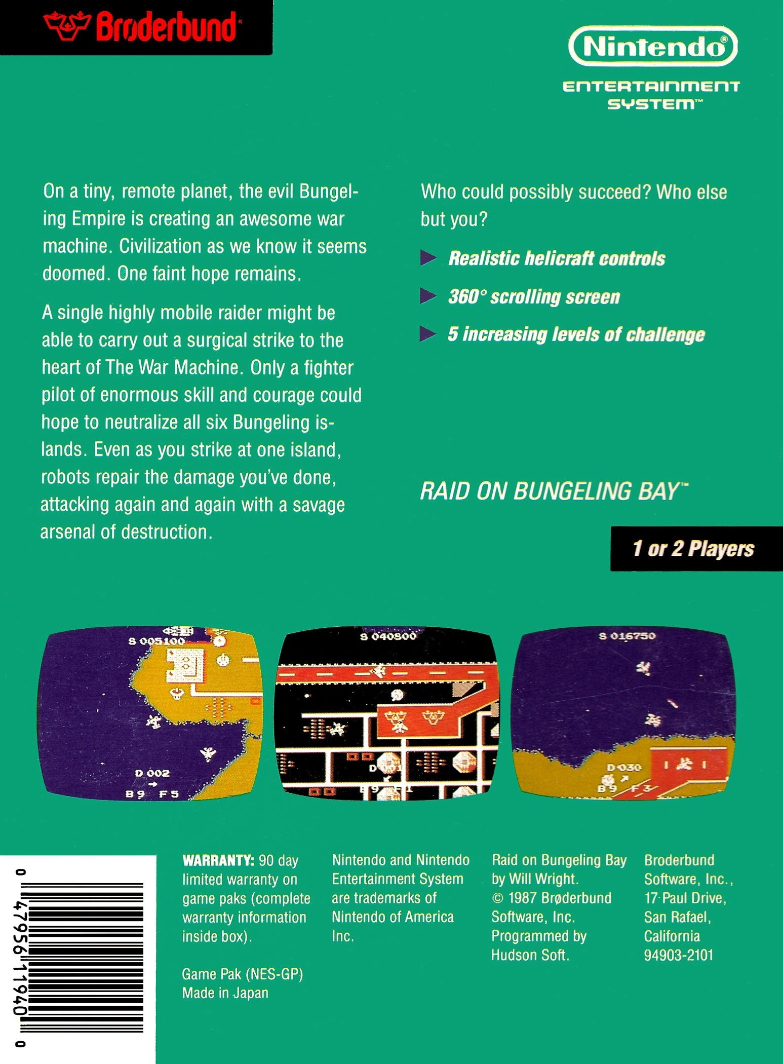 Defend your island nation from an invading force in Raid on Bungeling Bay for the NES. Pilot an attack helicopter and launch daring assaults against the Bungeling Empire's war machine. Destroy factories, shipyards, and enemy defenses across six distinct islands while managing your fuel and ammunition. This classic top-down shooter, an early creation by Will Wright (creator of SimCity and The Sims), offers challenging strategic action as you strategically target enemy infrastructure to halt their progress and ultimately destroy their heavily fortified core. It’s a demanding and engaging 8-bit war game.