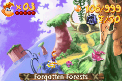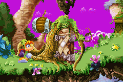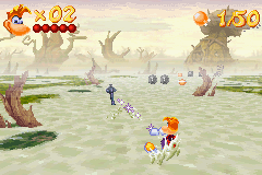 Embark on a whacky platforming adventure with Rayman 3 for the GameBoy Advance. Unlike its 3D console counterpart, this handheld version is a dedicated 2D side-scroller that captures the spirit of the original Rayman games. You control the limbless hero as he journeys to stop Andre and the Hoodlums. The game features gorgeous, colorful graphics and fluid animation. You will swing from hoops, pilot rockets, and use Rayman's telescopic fists to defeat enemies. The level design emphasizes rhythm and flow, offering a distinct and high-quality platforming experience separate from the home console release.