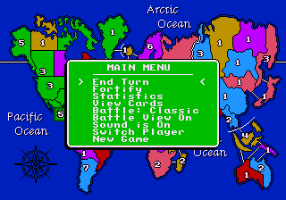 Conquer the world through strategic warfare in Risk for the Sega Genesis. This classic board game adaptation brings the iconic game of global domination to your 16-bit console. Command your armies, fortify your territories, and engage in dice-rolling battles to eliminate your opponents and control the world map. Play against AI opponents with varying difficulty levels or challenge friends in multiplayer mode. With its faithful recreation of the original board game's rules and strategic depth, Risk on the Sega Genesis offers timeless turn-based fun and a true test of your tactical acumen.