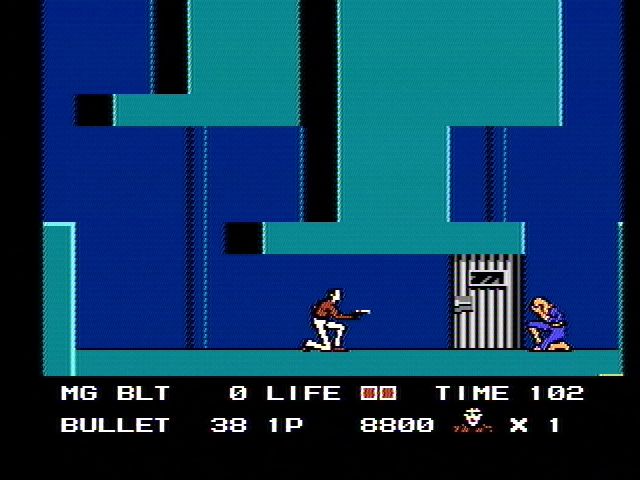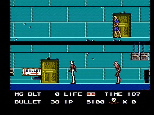 Infiltrate enemy territory and rescue hostages in the classic arcade hit Rolling Thunder for the NES. As Albatross, a member of the WCPO's "Rolling Thunder" espionage unit, you must battle the masked agents of the Geldra organization. Navigate side-scrolling levels, utilize cover by ducking into doorways, and shoot down enemies with your pistol or a more powerful machine gun. With its distinctive art style, challenging gameplay, and focus on strategic cover-based shooting, Rolling Thunder delivered an exciting and memorable action experience for NES players.