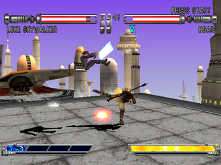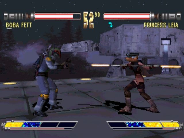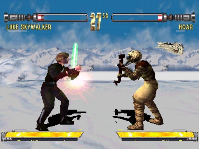 Engage in brutal, weapon-based combat with Star Wars: Masters of Teräs Käsi for the Playstation. This 3D fighting game brings together iconic Star Wars characters like Luke Skywalker, Han Solo, Darth Vader, and Boba Fett, alongside new combatants, to battle for supremacy using both hand-to-hand techniques and various melee weapons like vibro-axes and gaderffii sticks. Master unique move sets for each character and compete across arenas inspired by Star Wars lore. While a departure from typical Star Wars genres, it offered a distinct and often quirky fighting experience.