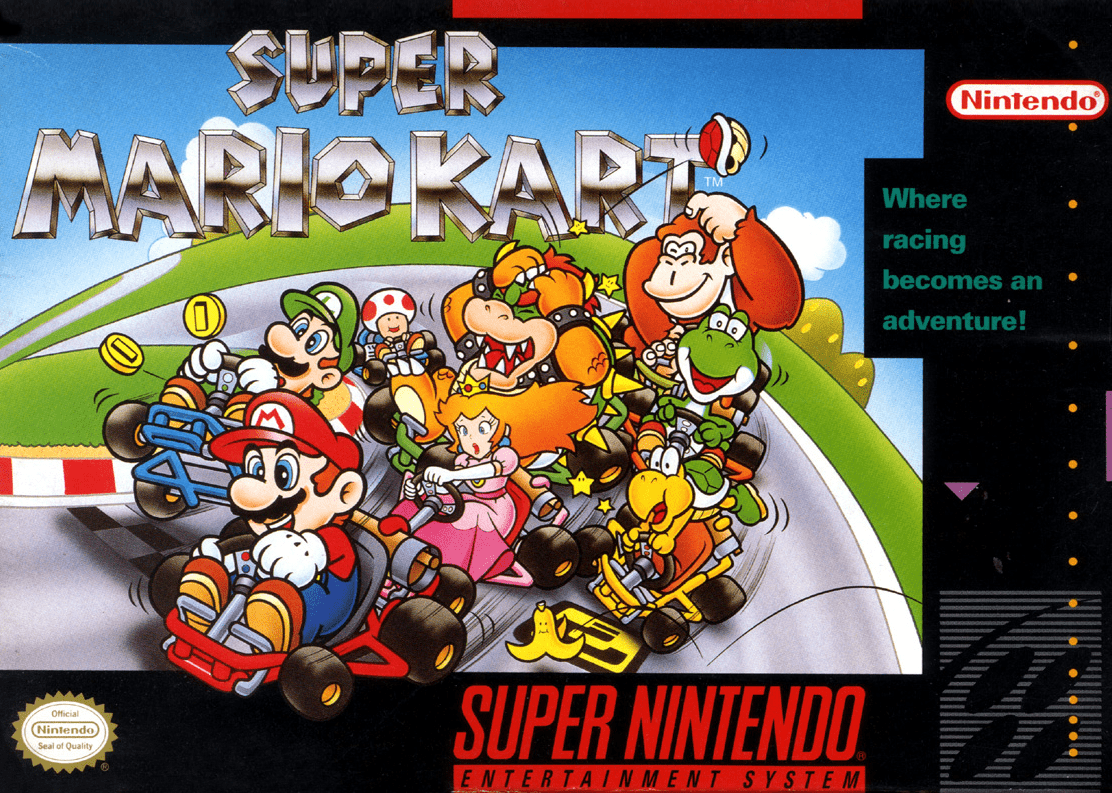 Hit the track with Mario and friends in the game that started a worldwide phenomenon, Super Mario Kart for the Super Nintendo. Choose from eight iconic Mushroom Kingdom characters, each with unique driving attributes, and race across a variety of colorful and imaginative courses. Utilize an arsenal of wacky items like Koopa Shells, Banana Peels, and Super Stars to gain an edge over your opponents. With its groundbreaking Mode 7 graphics, addictive gameplay, and incredibly fun split-screen multiplayer Battle Mode, Super Mario Kart is a timeless and beloved classic.