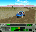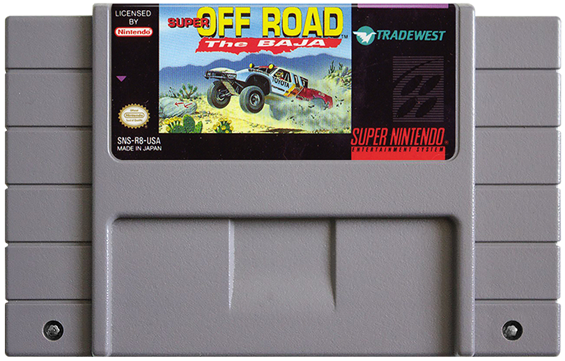 Get ready for chaotic, top-down racing action in Super Off Road The Baja for the Super Nintendo. This sequel to the arcade classic takes the competition to the grueling deserts of the Baja peninsula. Choose your high-powered truck or buggy and compete against a field of aggressive racers on treacherous, jump-filled dirt tracks. Collect cash on the track and use it between races to upgrade your vehicle's engine, tires, and shocks to gain an edge. With its classic isometric perspective and fun, arcade-style gameplay, this is a fantastic retro racer perfect for some friendly competition.