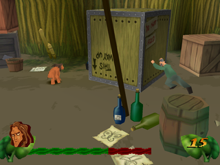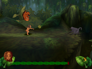 Swing through the jungle in a breathtaking platforming adventure with Tarzan for the Playstation. Based on the beloved Disney animated film, this vibrant 2.5D side-scroller beautifully captures the look and feel of the movie. Play as the young Tarzan, navigating lush, multi-layered jungle environments by swinging on vines, grinding on branches, and surfing down trees. Battle dangerous wildlife, collect coins, and relive key moments from the film's story. With its fluid animation and action-packed level design, this is a visually stunning and incredibly fun journey for players of all ages.