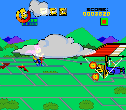 Bart Simpson is trapped in a bizarre dream world and must find his lost homework to escape in The Simpsons: Bart's Nightmare for the Super Nintendo. This challenging action-platformer sees Bart navigating various surreal levels inspired by his anxieties and school life, from a "Temple of Maggie" to an Itchy & Scratchy cartoon. Utilize different abilities and power-ups, such as bubble gum for floating or watermelon seeds for attacking, to overcome obstacles and enemies. With its distinctive Simpsons humor and varied gameplay segments, it offers a unique and often difficult 16-bit adventure.