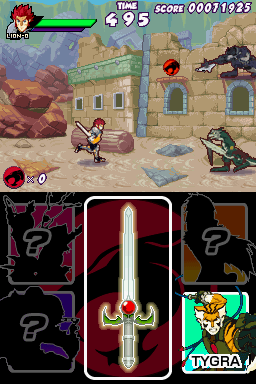 Join Lion-O, Panthro, Cheetara, and Tygra on an adventure to stop Mumm-Ra in ThunderCats for the Nintendo DS. Based on the classic animated series or its revival, this action game allows you to play as the iconic feline heroes, utilizing their unique weapons and abilities. Battle mutants, robots, and other evil forces across various levels inspired by Third Earth. Engage in side-scrolling combat and platforming action, and unleash powerful special moves. ThunderCats on DS offers a nostalgic and action-packed portable experience for fans of the legendary cartoon.
