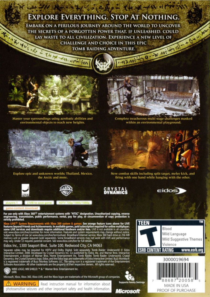 Explore forgotten myths and uncover a dark secret in Tomb Raider: Underworld for the Xbox 360. Lara Croft's quest for Avalon and the truth about her mother's disappearance leads her to breathtaking and treacherous locations across the globe, including underwater ruins, Thai jungles, and Arctic wastes. This action-adventure features enhanced acrobatic platforming, dynamic combat, and complex environmental puzzles. The Xbox 360 version boasts stunning high-definition graphics and a sophisticated physics engine, delivering a visually spectacular and immersive experience that continues Lara's epic journey.