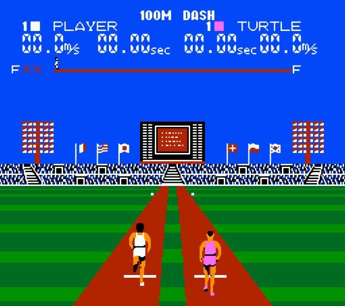 Go for the gold and become a champion in World Class Track Meet for the NES. This classic sports title invites you to compete in a series of Olympic-style athletic events that will test your speed and timing. Using the NES Power Pad accessory, you can physically run in place to control your on-screen athlete in events like the 100m Dash, Long Jump, 110m Hurdles, and Triple Jump. Compete against the computer or challenge a friend in head-to-head multiplayer action to see who is the ultimate track and field superstar.
