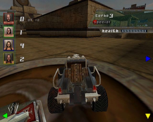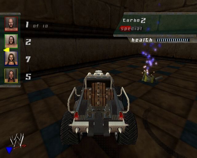 See your favorite WWE superstars trade the wrestling ring for the demolition derby! WWE Crush Hour for the Gamecube is a high-octane vehicular combat game unlike any other wrestling title. Get behind the wheel as The Rock, Stone Cold Steve Austin, The Undertaker, and more, each piloting a custom-built, armed-to-the-grill vehicle. This isn't about pins; it's about destruction. Battle it out in chaotic arenas filled with traps and power-ups, using machine guns, missiles, and character-specific special moves to destroy your opponents. It's time to find out who truly rules the road.
